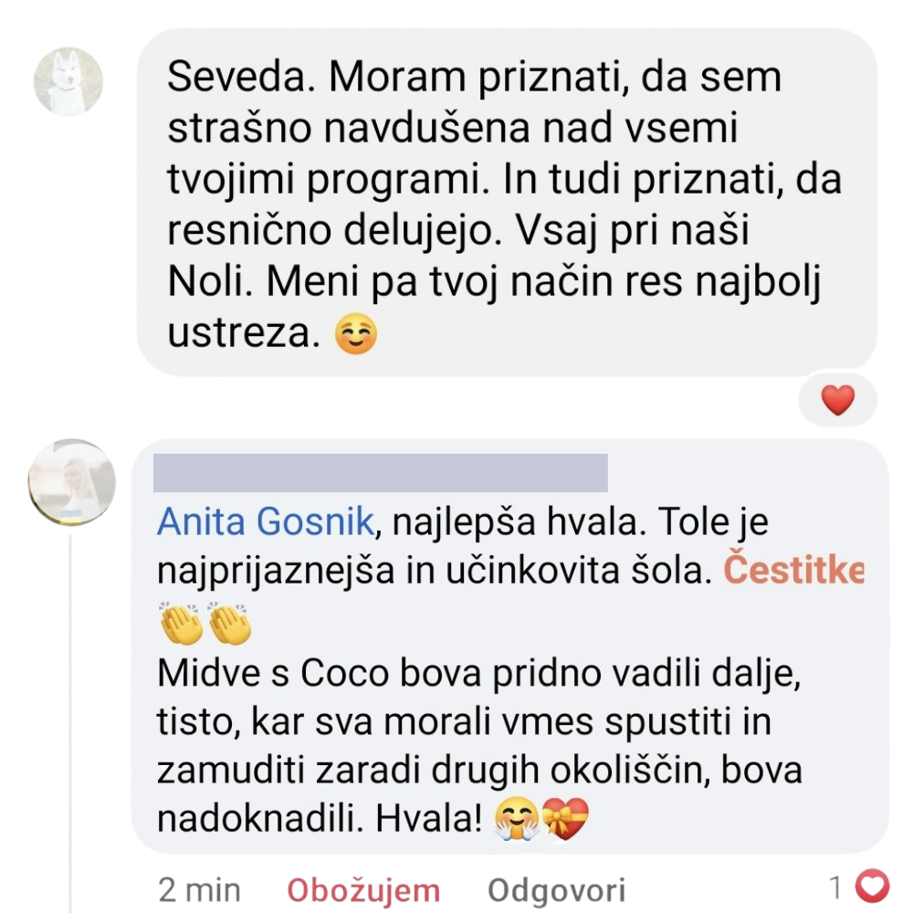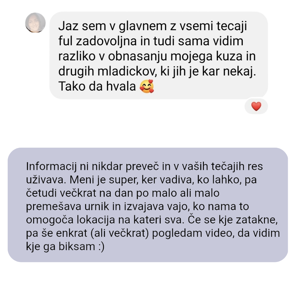 Moja vizija je, da ima vsak pasji skrbnik v Sloveniji dostop do strokovne vzgoje. Zato sem svoje znanje prenesla v online tečaj po dostopni ceni.