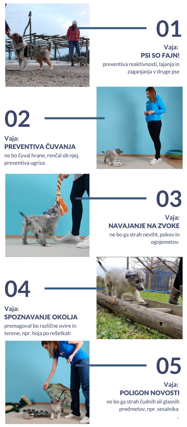 • SOCIALIZACIJA: vaje za preventivo strahu in agresije do ljudi, psov